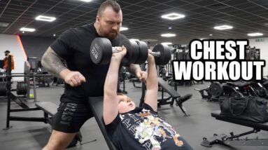 Training at a NEW GYM with Dad! (CHEST DAY) – Ft. Eddie Hall