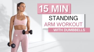 15 min STANDING ARM WORKOUT | With Dumbbells | Shoulders, Biceps and Triceps